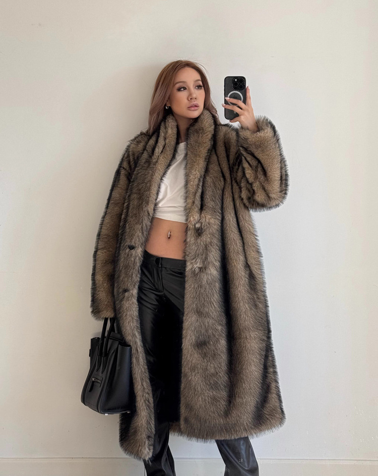 FZ Women's Faux Fur Long Wolf Trench Coat Jacket