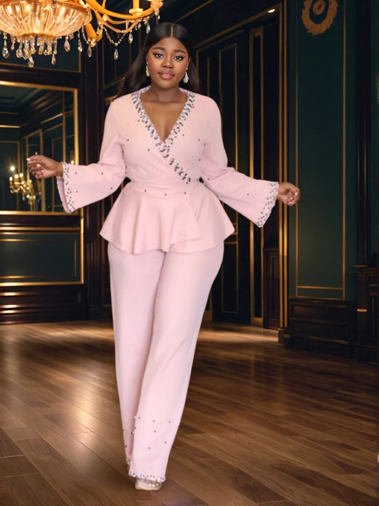 Perfect for any occasion, this casual jumpsuit combines elegant style and comfort. With its flattering V-neck and full length design, you'll feel confident and stylish. The beaded details add an extra touch of sophistication to this must-have piece. Elevate your wardrobe with this stunning jumpsuit.