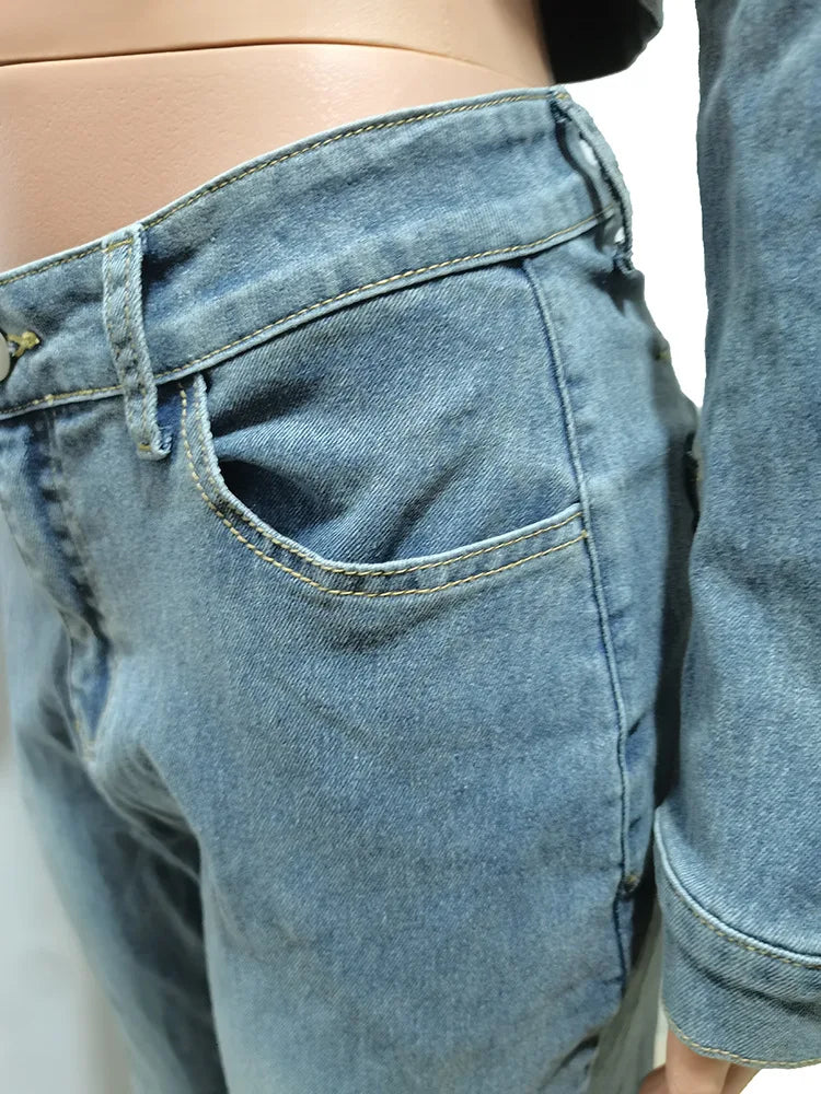 FZ Women's  Hoodie  Hight Waist Flare Two Piece Denim Pants Suit - FZwear