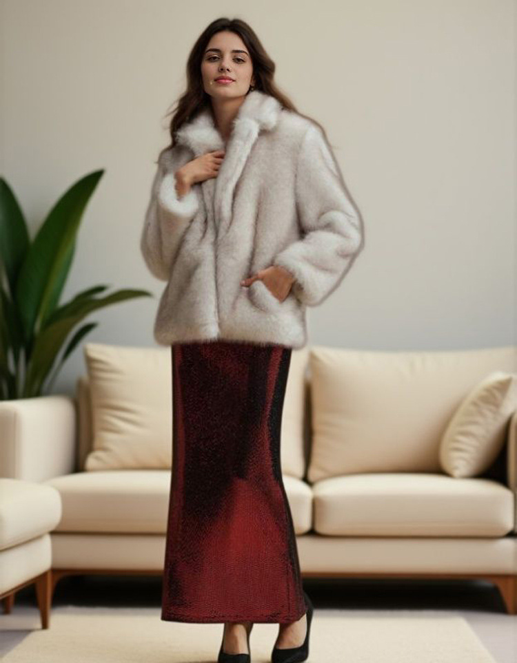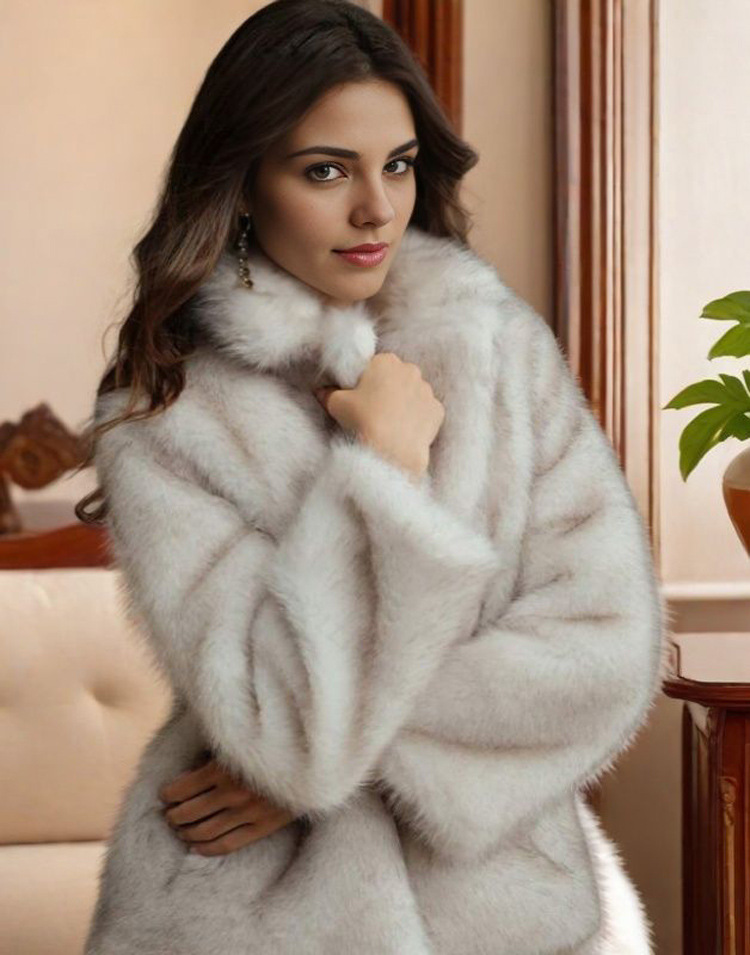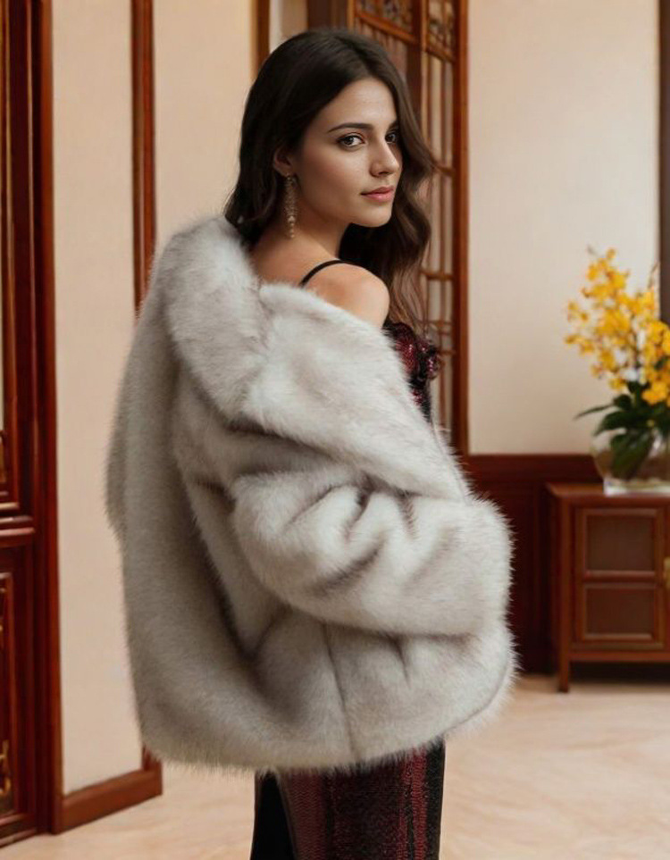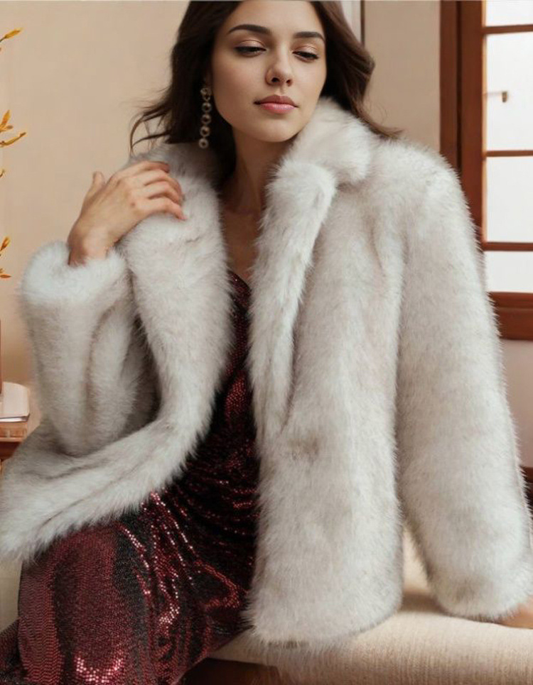 Crafted for warmth and style, the plush faux fur fabric of this shawl jacket offers exceptional insulation while adding a chic, elegant touch to your outfit. Perfect for layering on cool days, this jacket combines comfort with a fashionable silhouette, making it a versatile choice for both casual and dressier occasions.