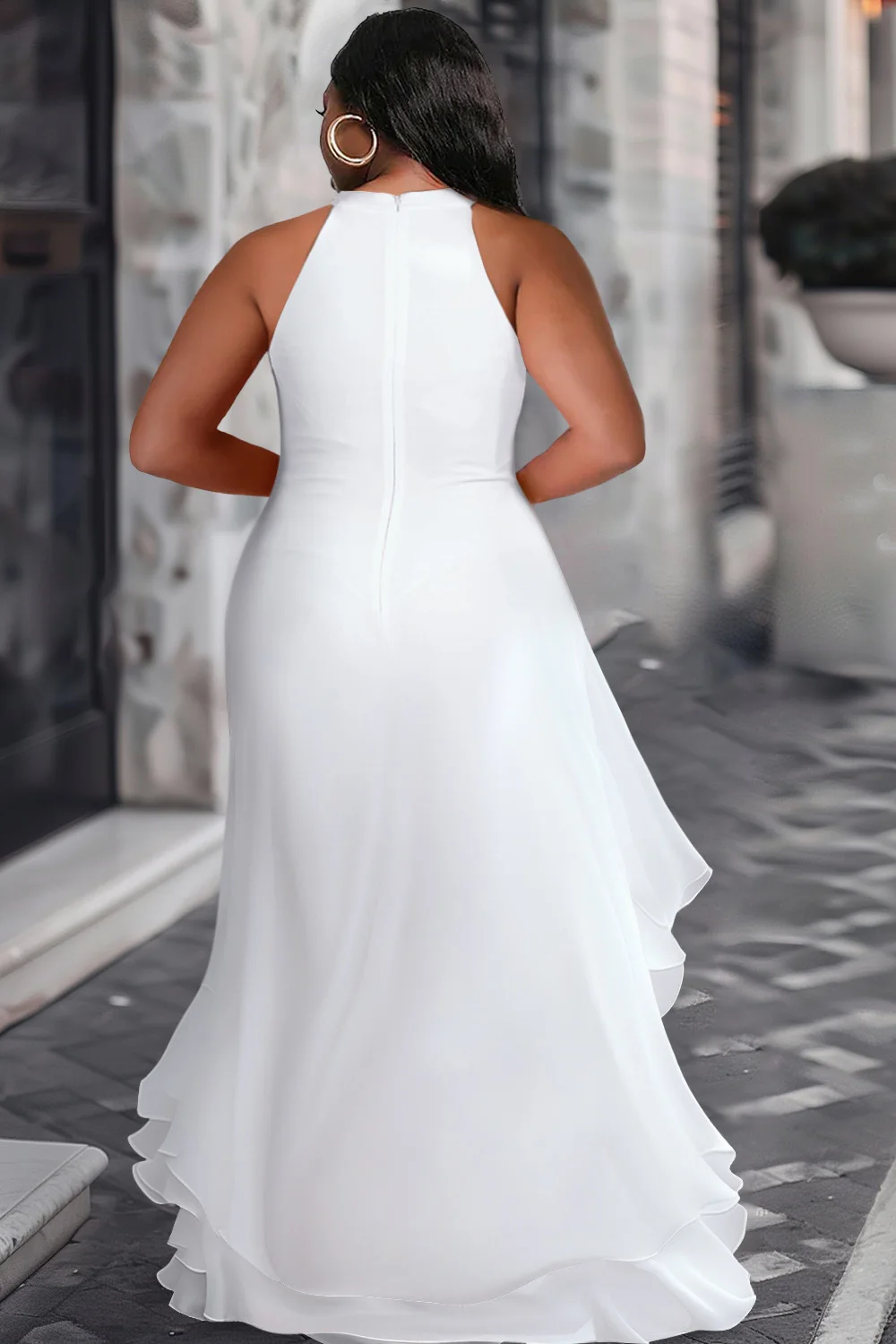 FZ Women's Plus Size Halter Collar Split Ruffle Maxi Evening Dress