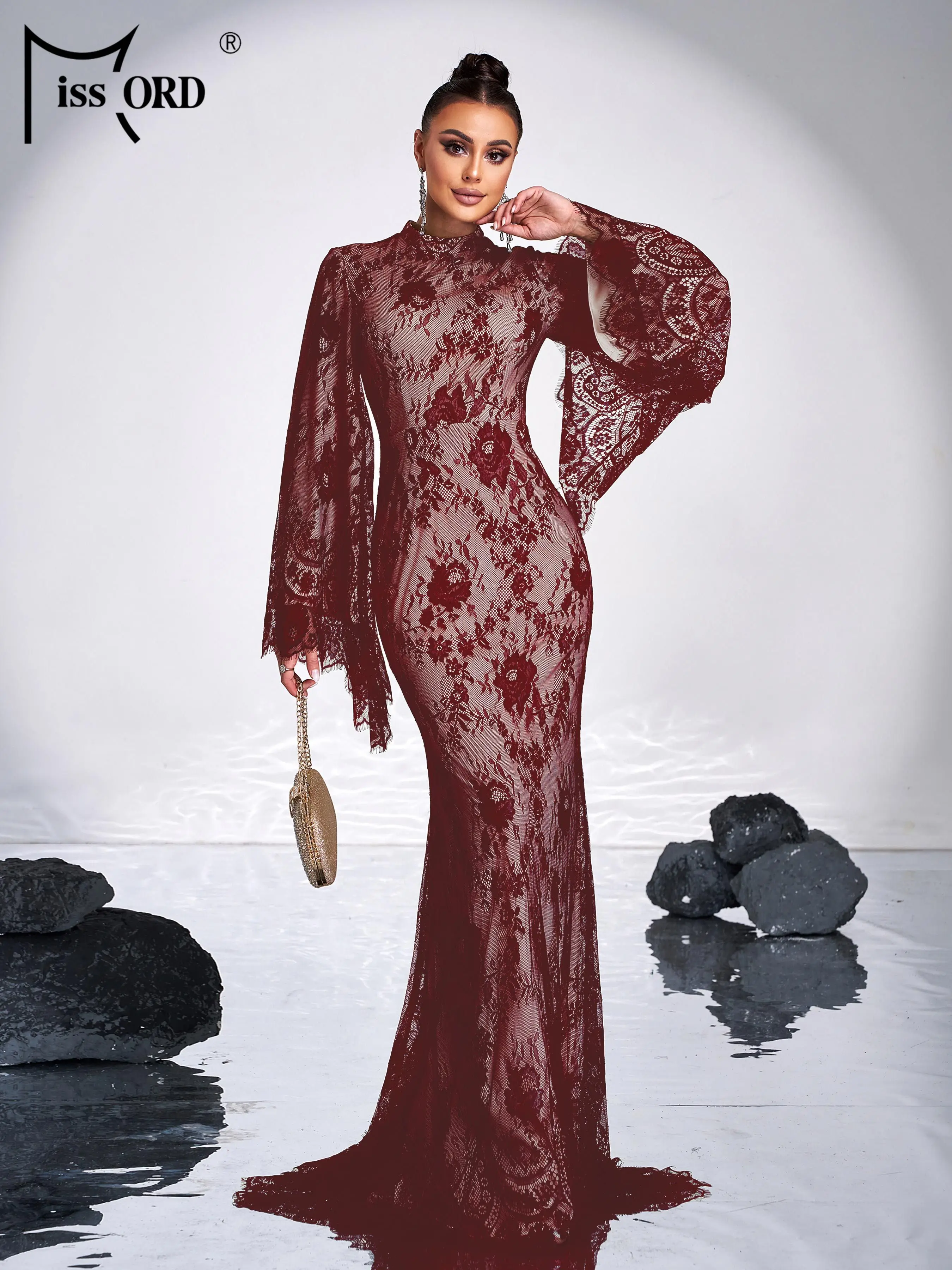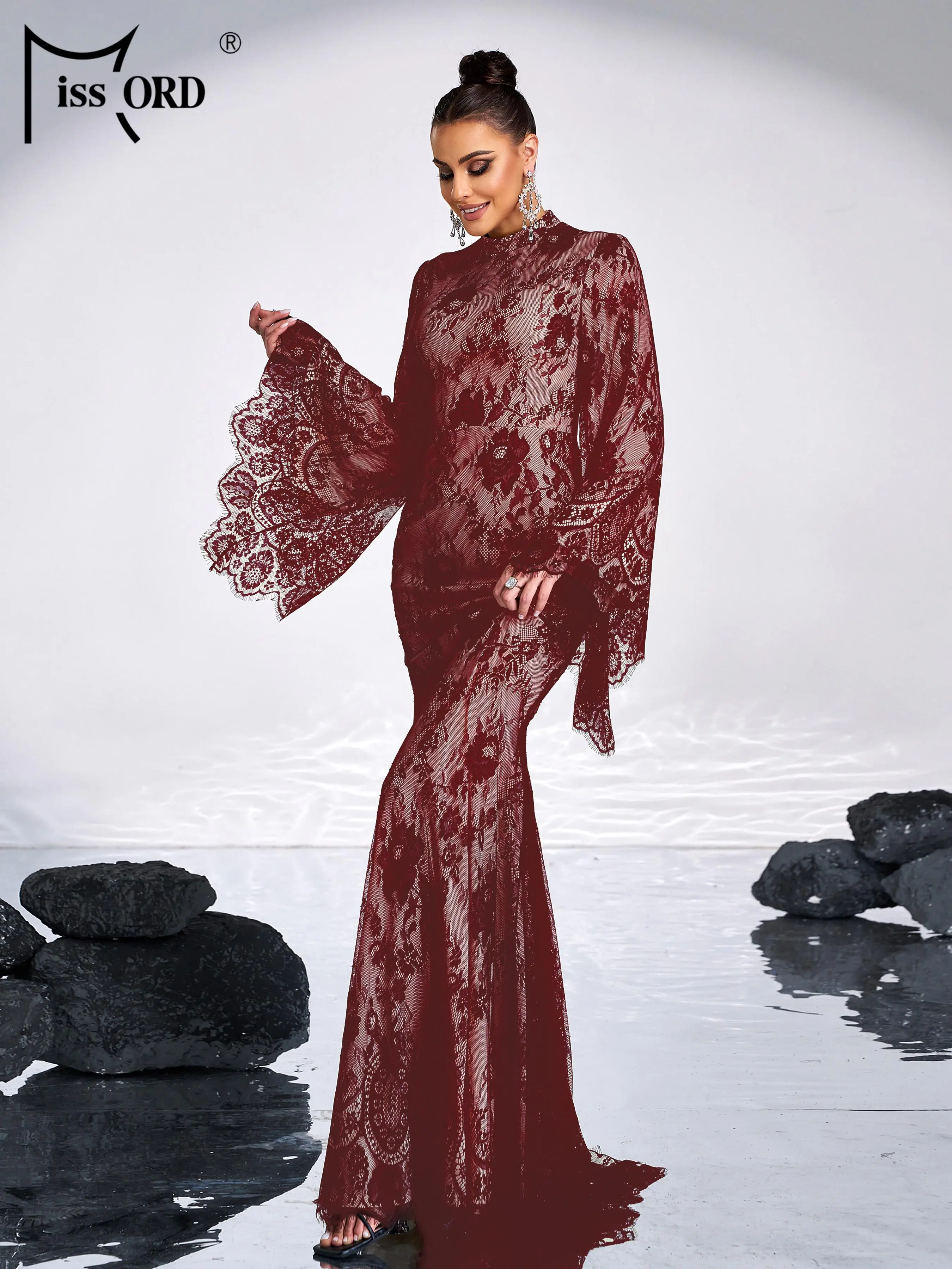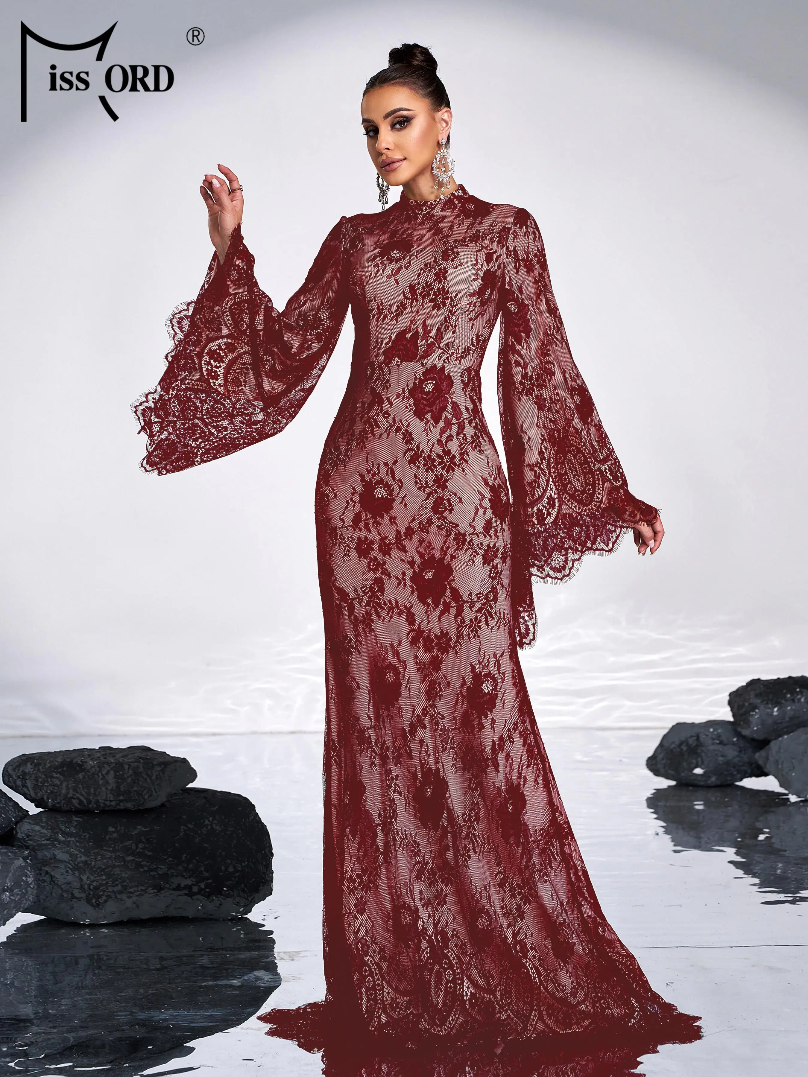 Expertly designed, this evening dress features a flattering round neckline, elegant flare sleeves, and a mermaid silhouette that accentuates your figure. Crafted from delicate tulle, it offers a graceful movement and refined texture perfect for cocktail parties or formal events. This dress combines sophisticated style with comfort, ensuring you make a polished statement wherever you go.