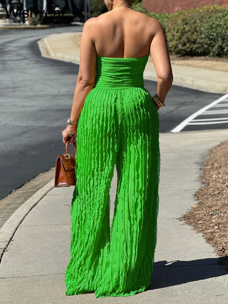 Experience effortless and stylish fashion with our FZ Women's Ruched Strapless Wide Leg One Piece Jumpsuit.