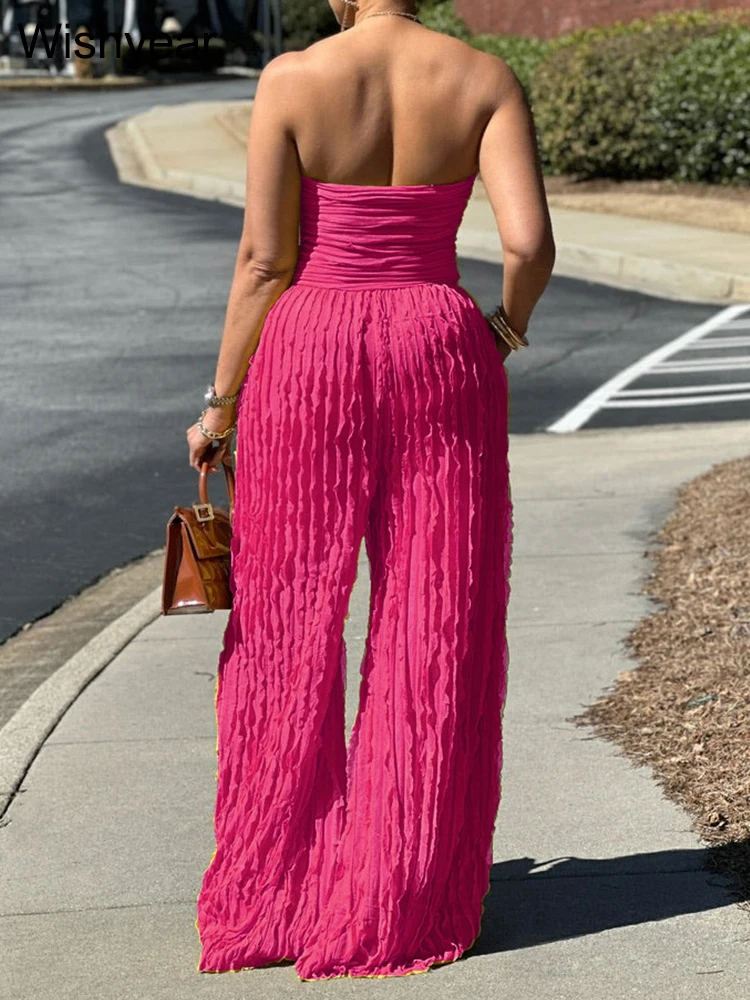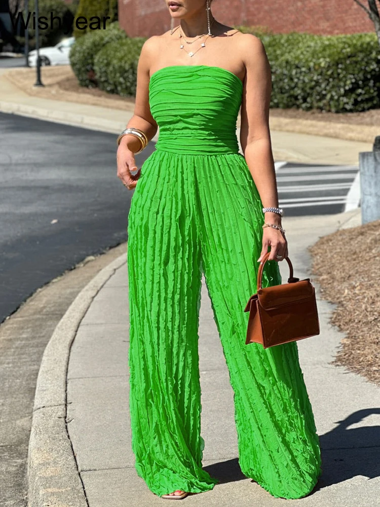 Embrace the perfect combination of comfort and trendiness with jumpsuit ruched design and strapless silhouette. Elevate your wardrobe and make a statement in any occasion.