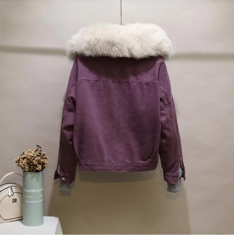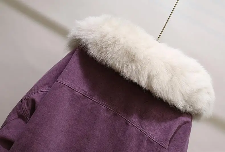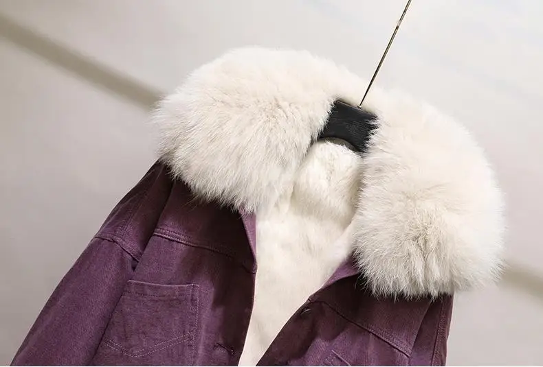 FZ Women's velvet thick fur liner and collar Parkas denim jacket