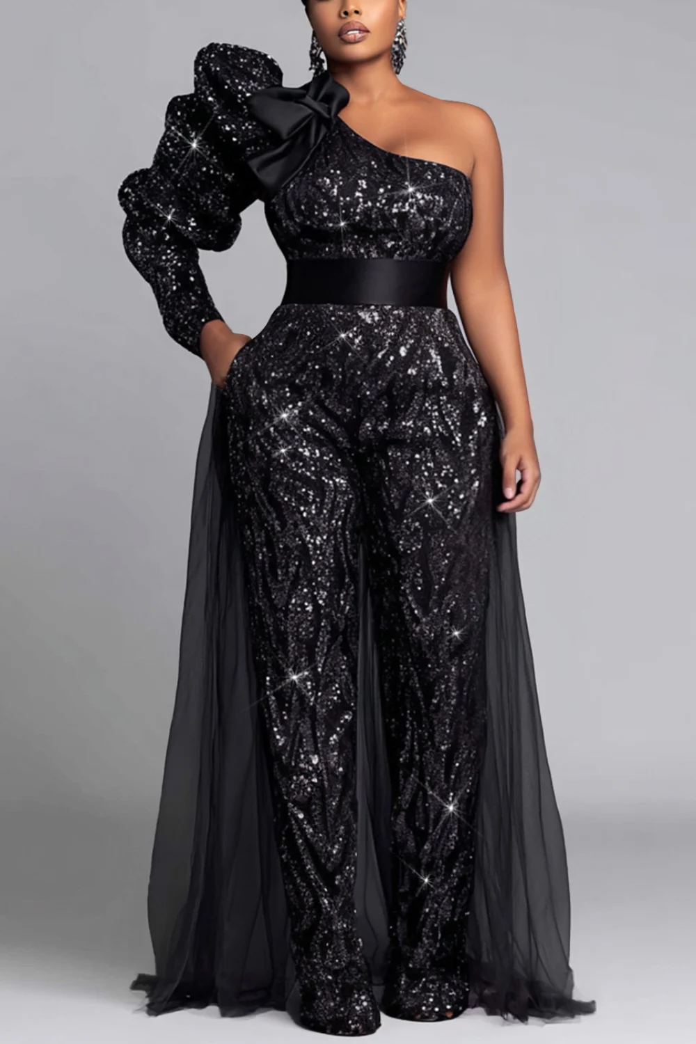 Elevate your evening wardrobe with this sophisticated one-shoulder jumpsuit, designed for the modern woman who commands attention.