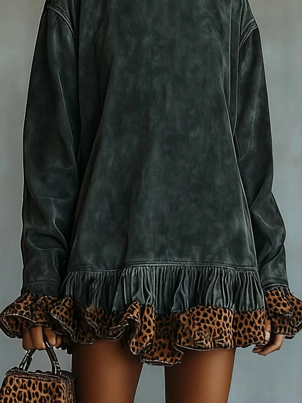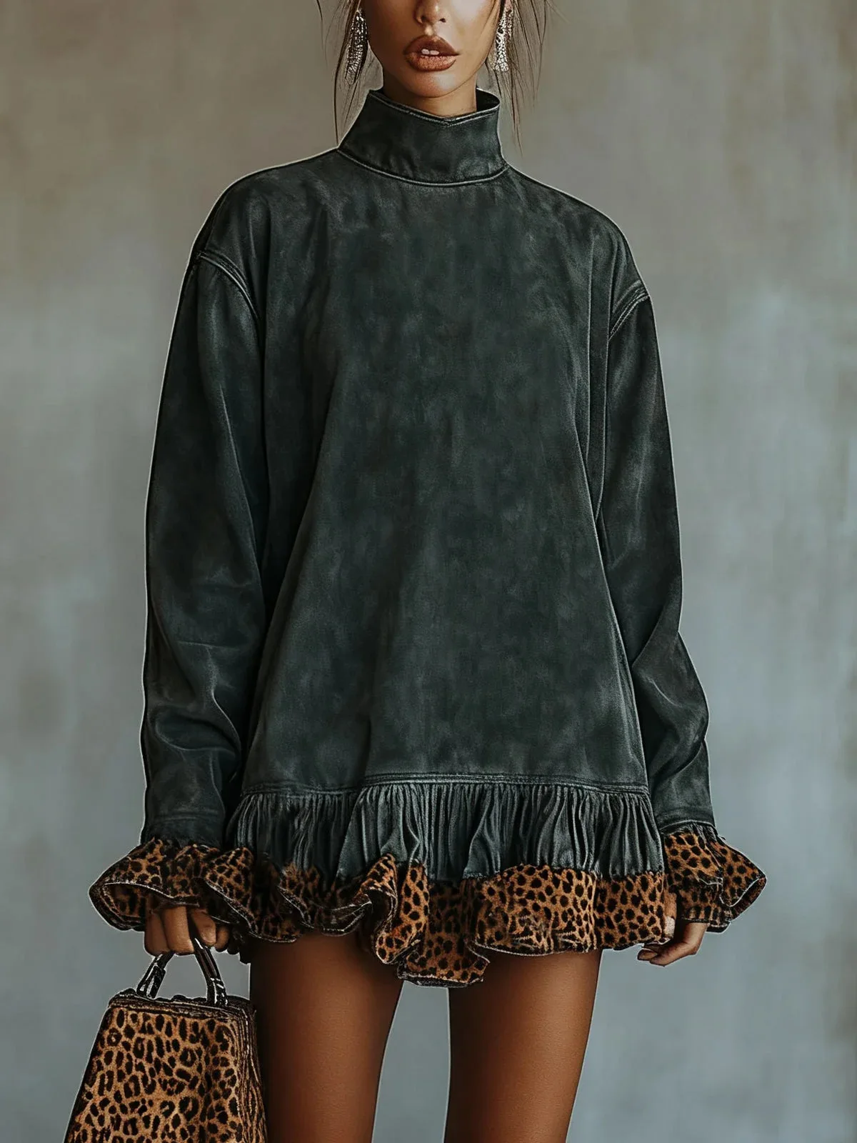 FZ Women's Turtleneck Leopard Trim Vintage Flare Sleeve Mini Dress combines timeless silhouette with contemporary edge.