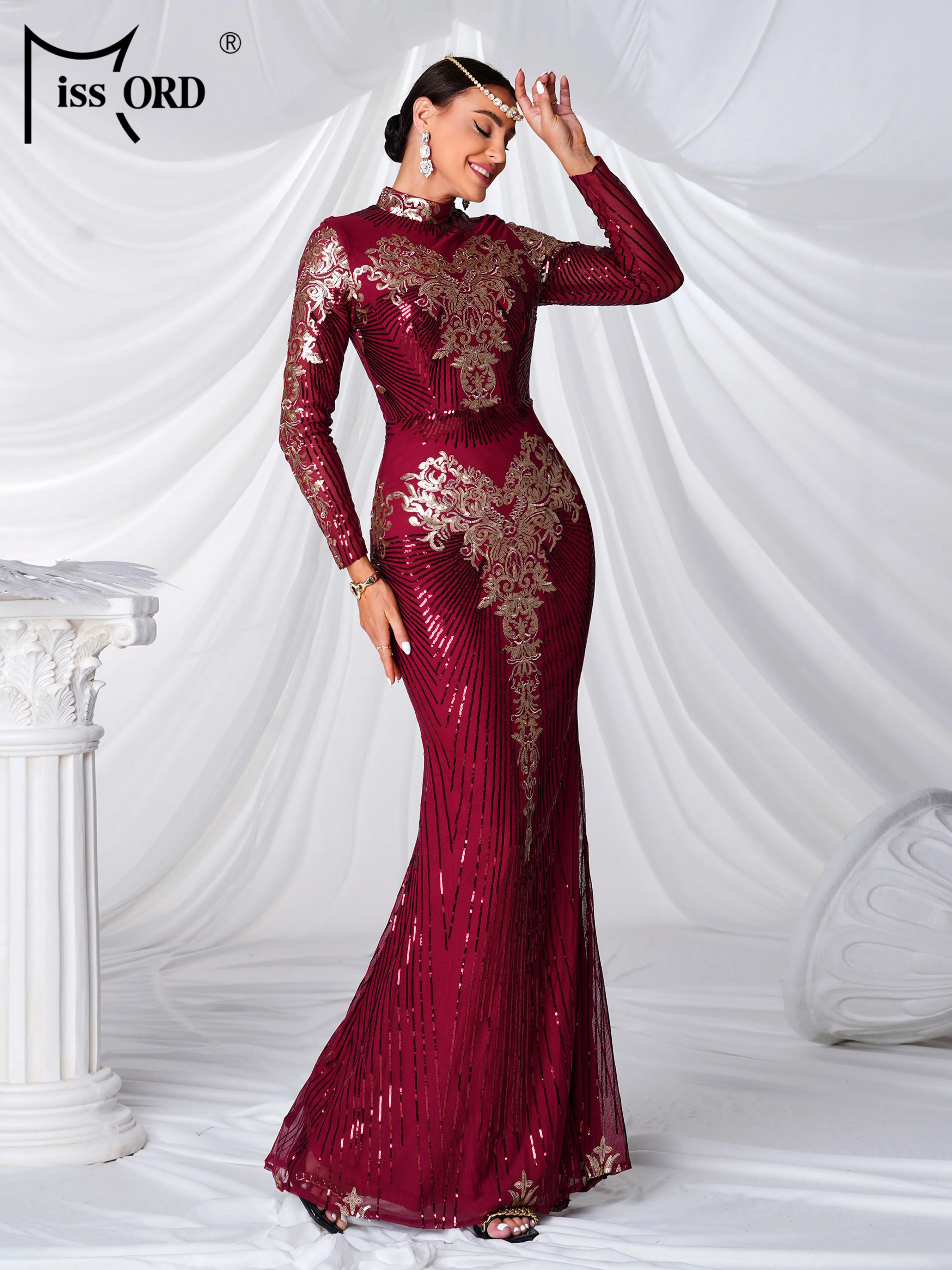 Be the star of the night with the FZ High Neck Long Sleeved Sequin Mermaid Evening Dress.