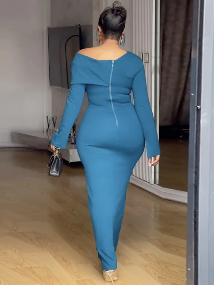 This FZ Women's One Shoulder Long Sleeve Maxi Evening Dress combines elegance with modern style.