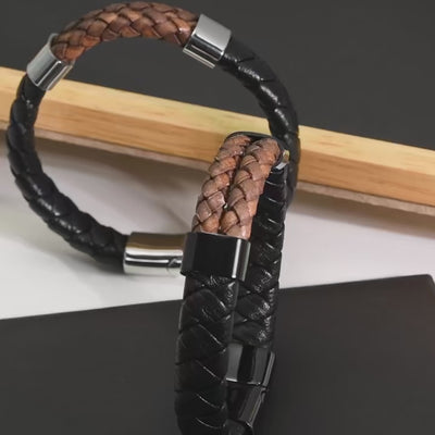 FZ Luxury Genuine Leather Black Braided Bracelet