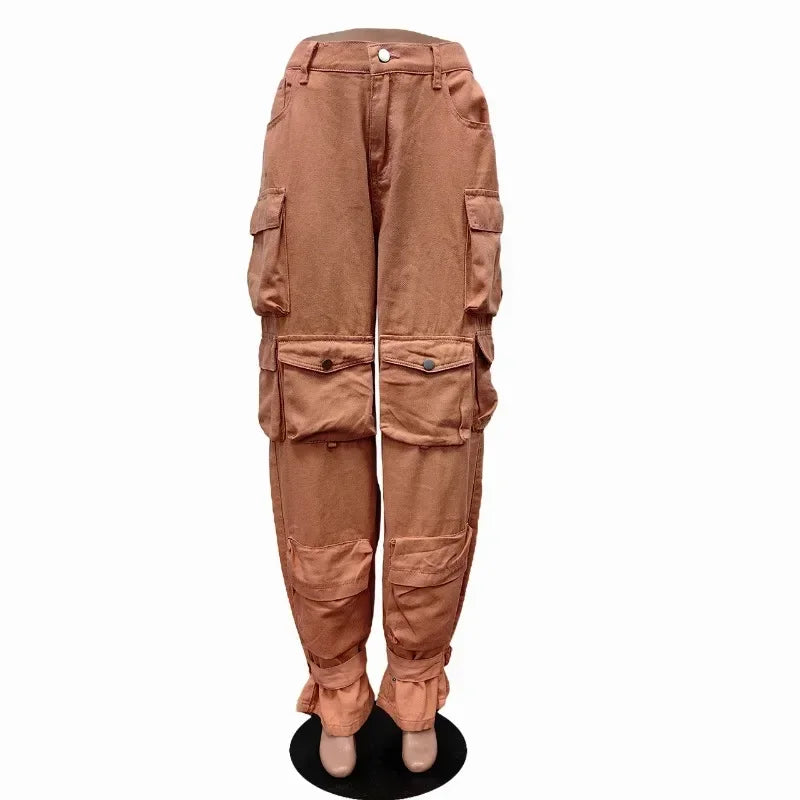 These FZ Women's Casual Button Fly High Waist Loose Straight Denim Cargo Pants are designed with a stylish and fashionable look, perfect for any casual occasion. The high waist and loose straight fit provide a comfortable and flattering fit for any body type. Made with durable denim fabric, these cargo pants are both chic and functional.