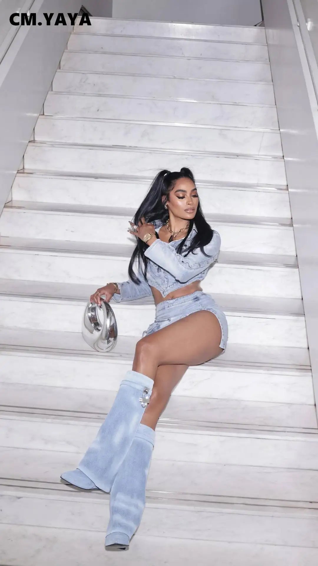 FZ Women's Pockets Denim Streetwear Cargo Sexy Two 2 Piece Skirt Suit