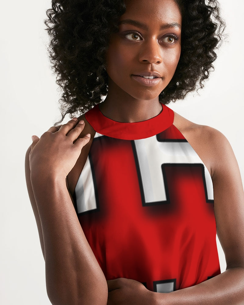 About The ArtFIRE ZONE ITS TO HOT TO HANDLE Product DetailsElegant yet simple, your personalized design will look phenomenal in our Women's Halter Dress. Handmade from polyester chiffon material and fastened in the back with two chic pearl buttons.