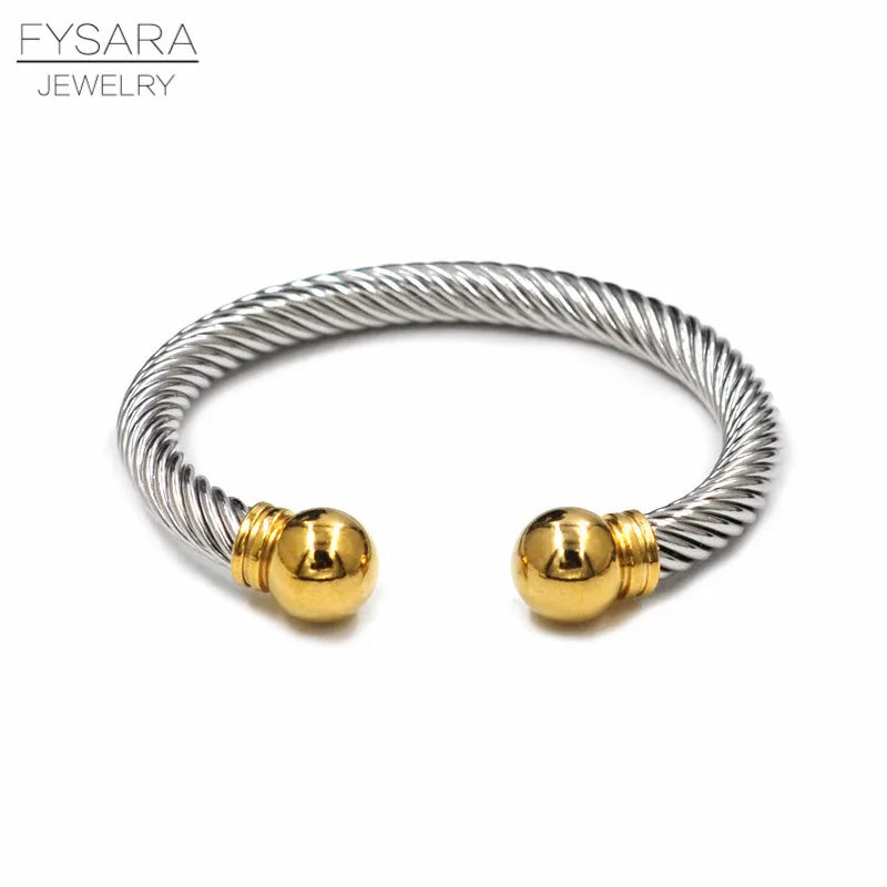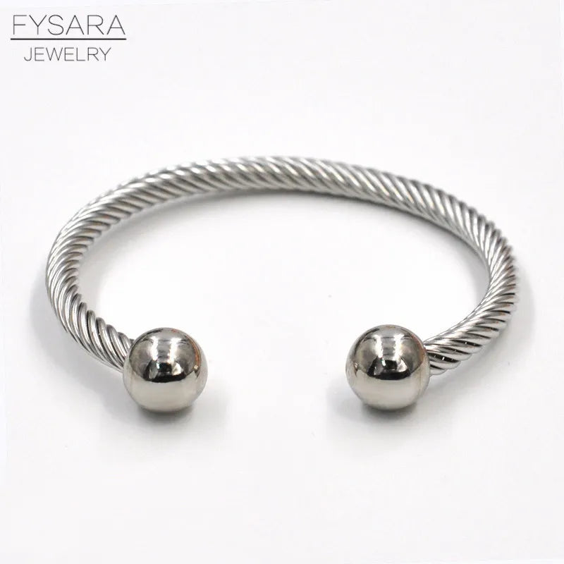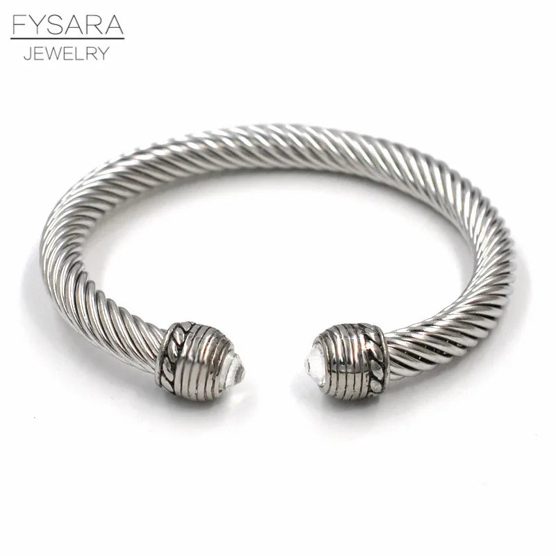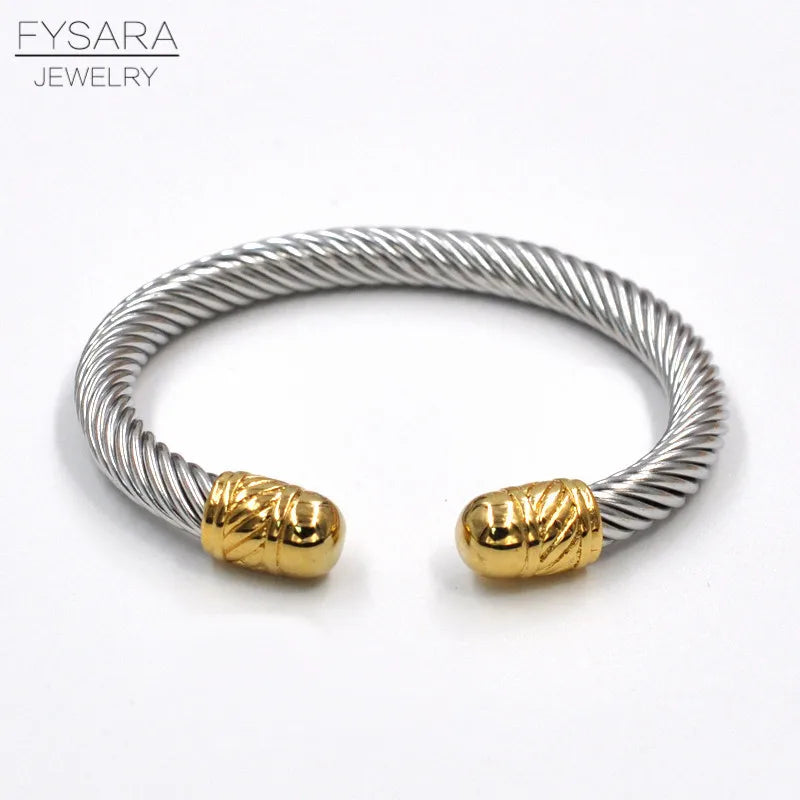 A trendy and versatile accessory, the FZ Twisted Cable Wire Cuff Wire Black Stackable Bracelets add a touch of edginess to any outfit.