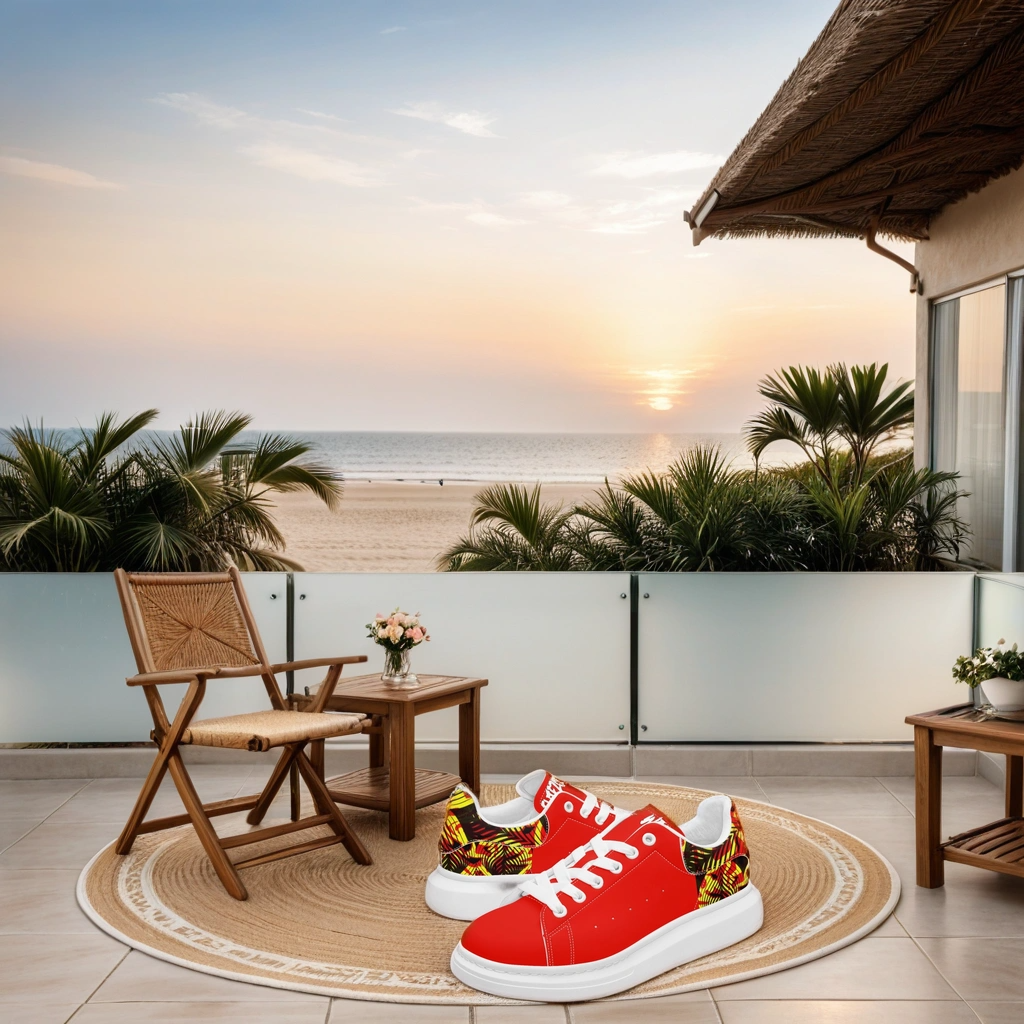 Upgrade your shoe game with the FZ African Print Sneakers. These stylish and fashionable sneakers feature a unique African print design and are made with high-quality leather, ensuring both comfort and style. Perfect for any outfit, these sneakers are a must-have for any fashion-forward individual.