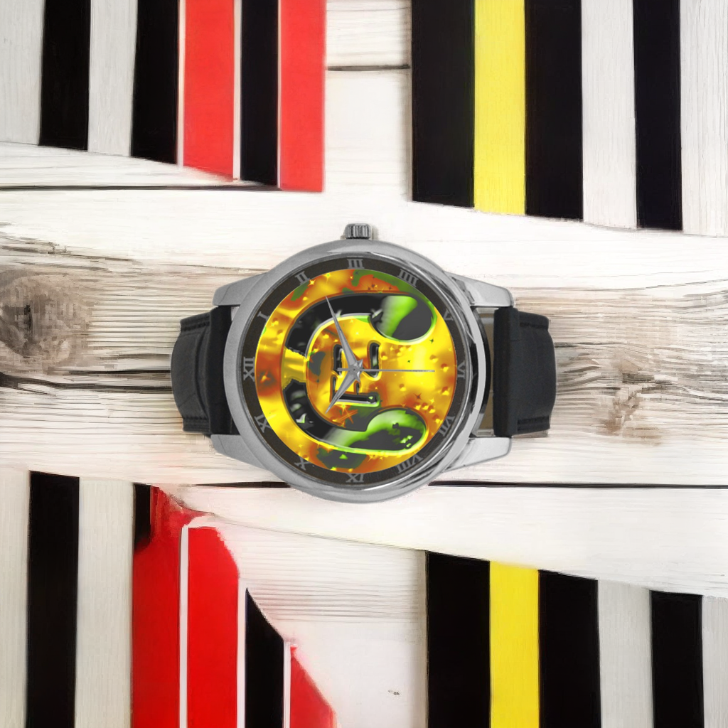 Men's Leather Strap Large Dial Watch. Metal case + tempered glass + leather band.