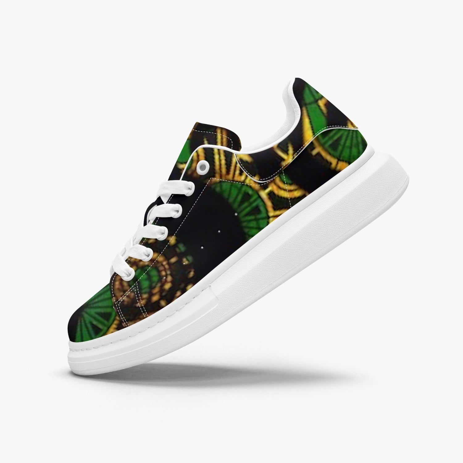 FZ Unisex African Print Leather Oversized Sneakers are a must-have for anyone looking for a stylish and fashionable shoe. The unique African print leather adds a touch of cultural flair, while the oversized design provides both comfort and trendiness. Upgrade your shoe game with these one-of-a-kind sneakers.