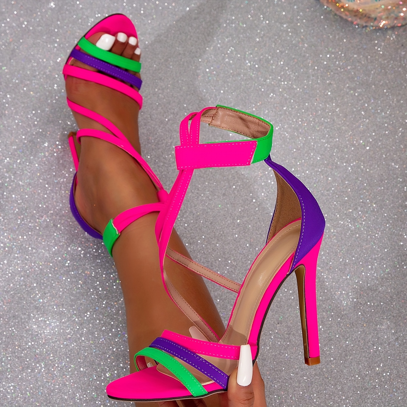 The dual ankle straps provide secure support and a bold architectural detail, while the contrast high heel elongates your silhouette. Crafted for all-night wear, the thoughtful strap construction distributes pressure evenly, letting you move with ease and poise. A modern take on classic elegance—perfect for nights out, special events, or whenever you want to command attention.