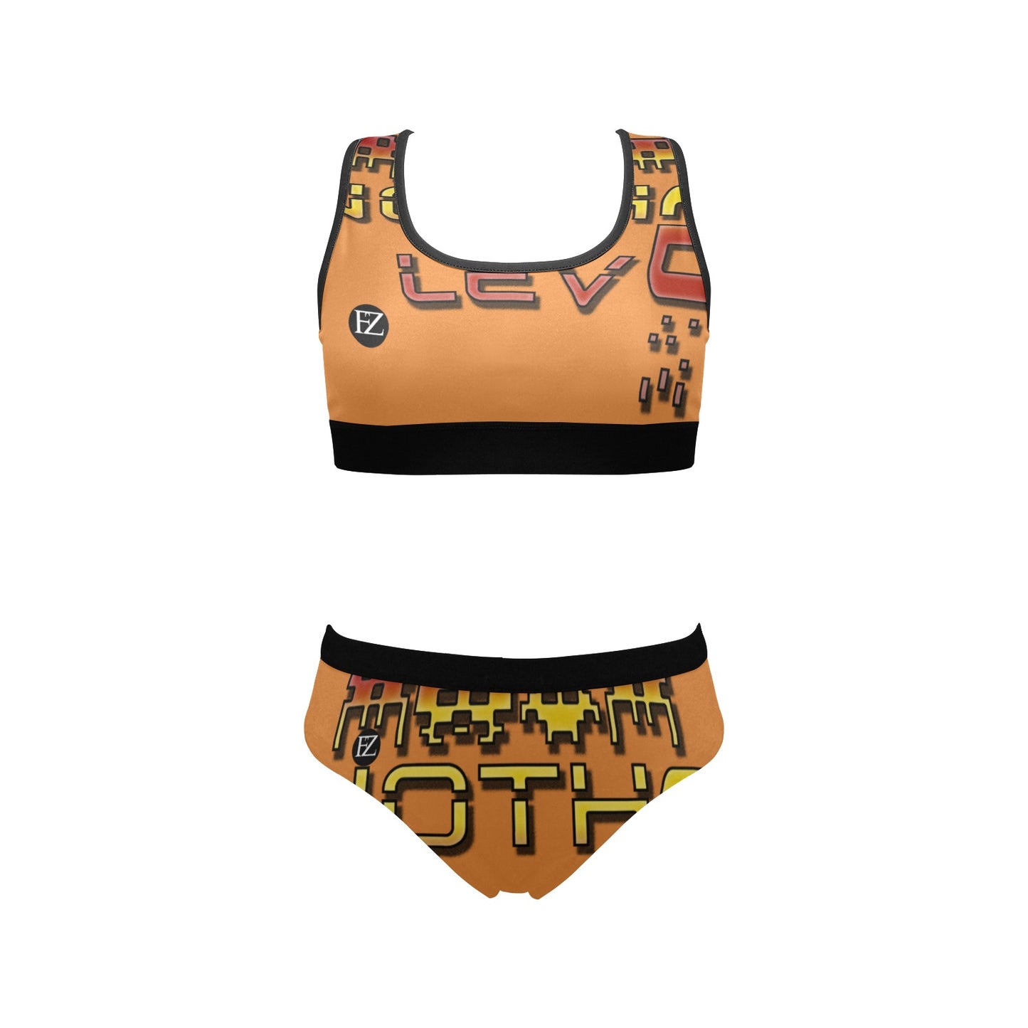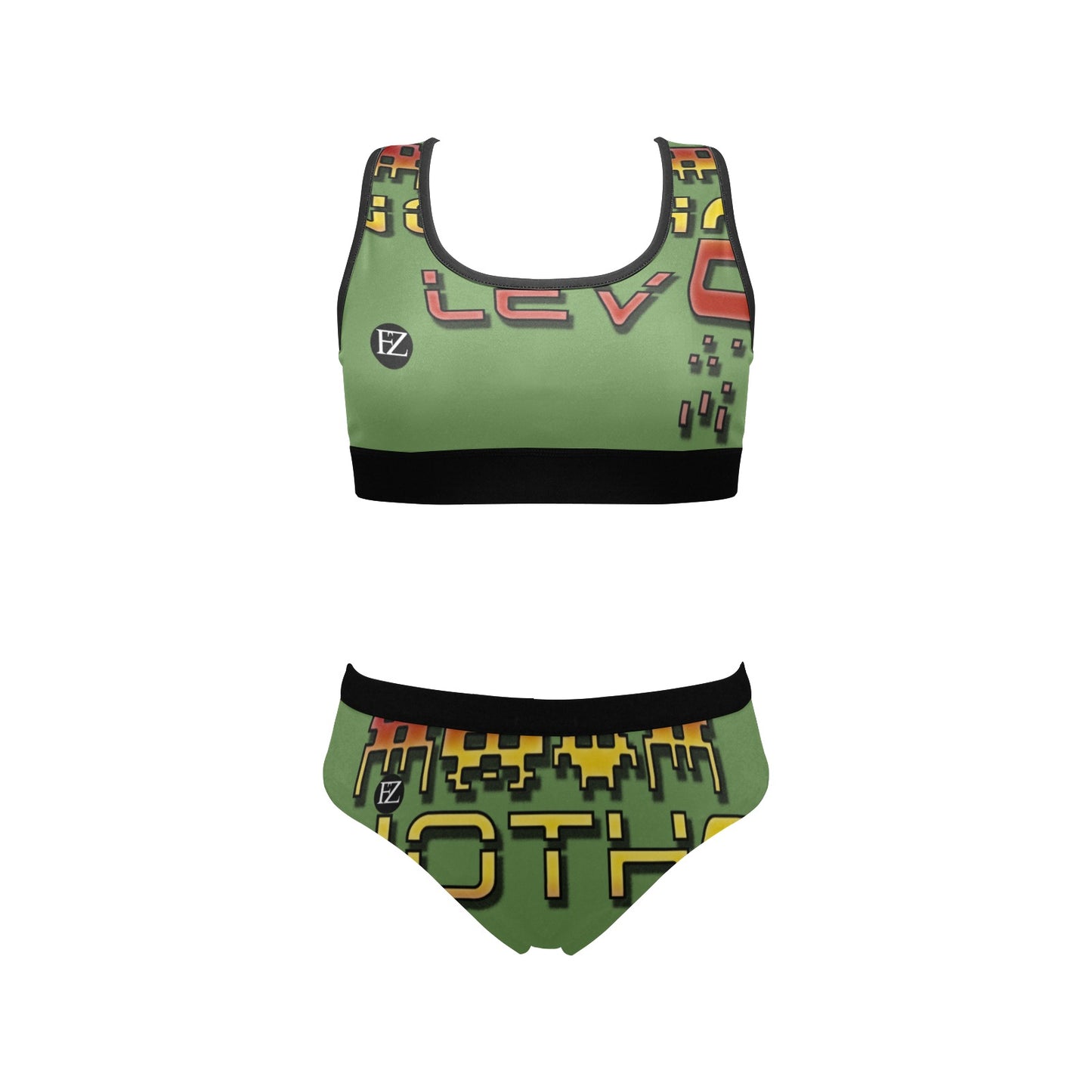 - Racerback style sport bra with scoop neckline and high-waisted thong for a clean look.