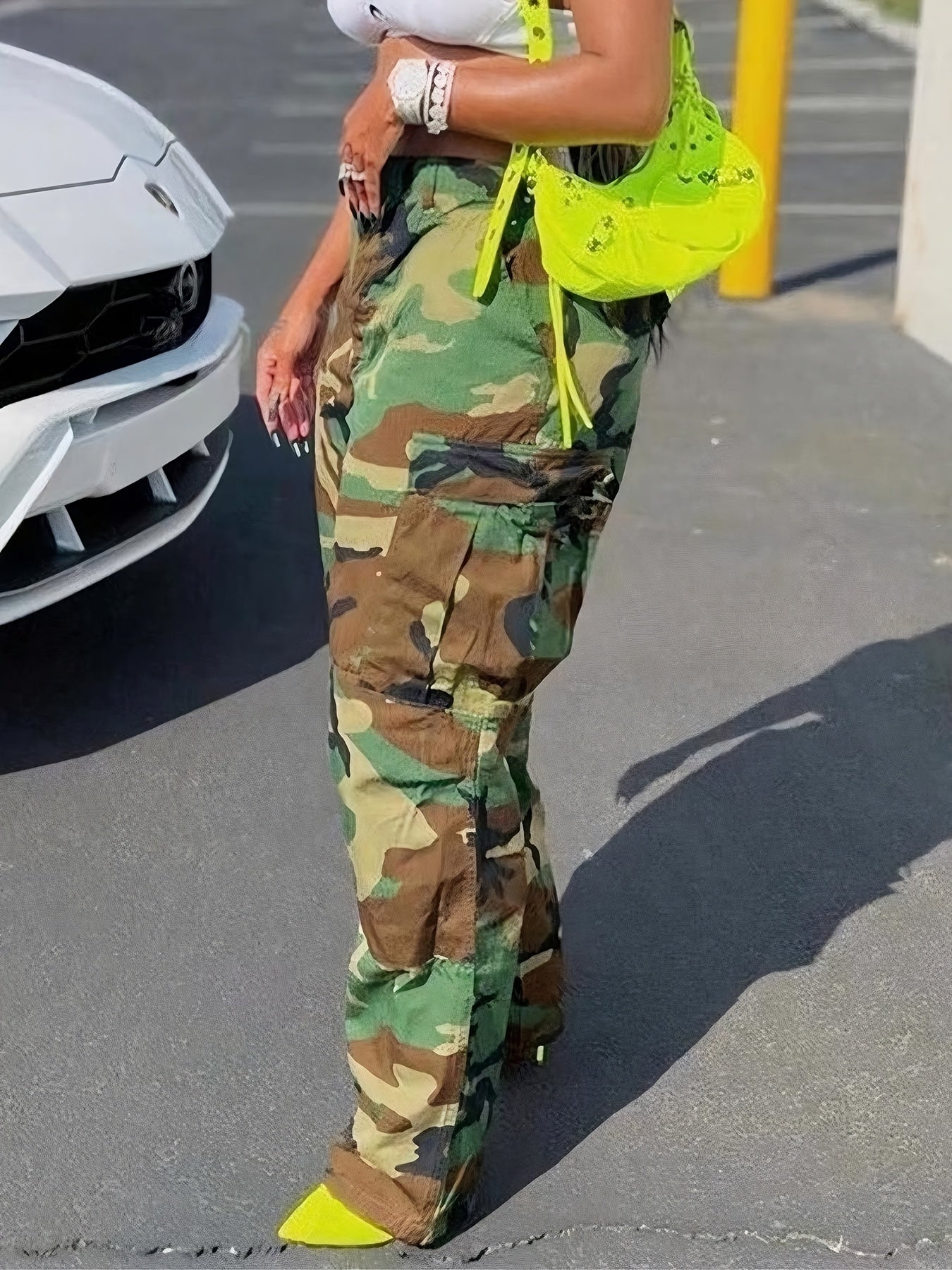 FZ Women's Camo Print Casual Street Style Elastic Waist Cargo Pants