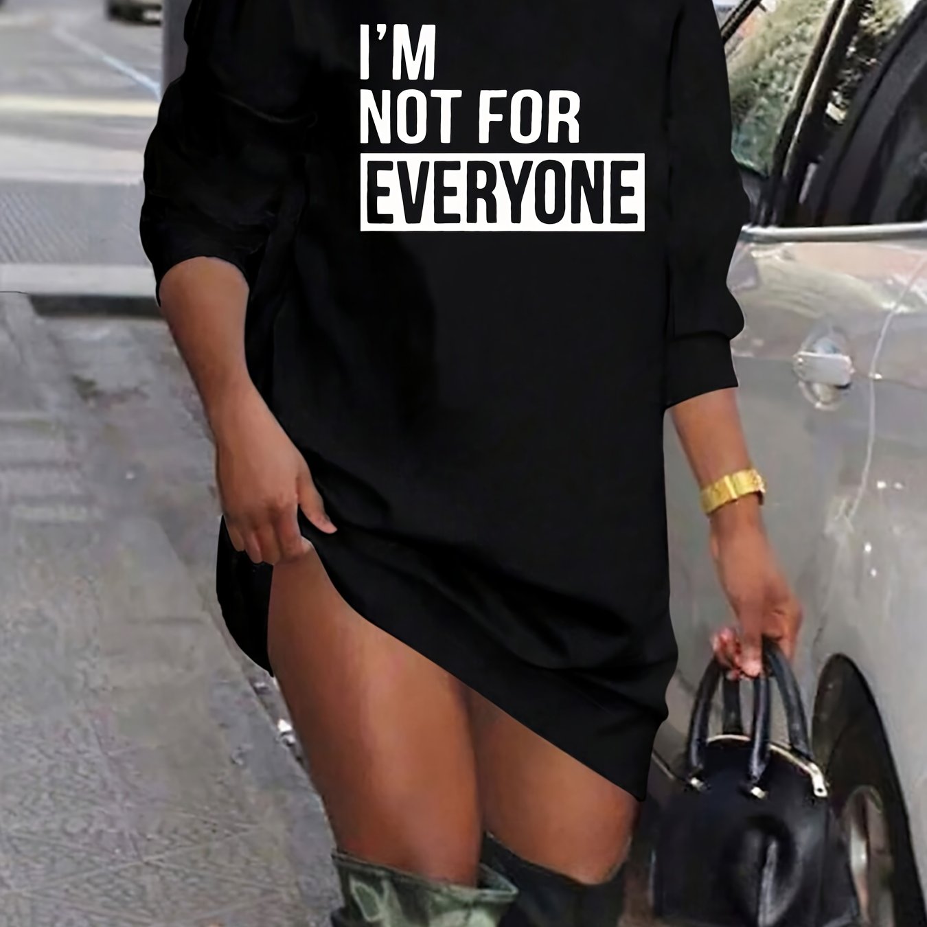 FZ Women's Casual Plush Lined Round Neck Letter Pattern Print Sweatshirt Dress