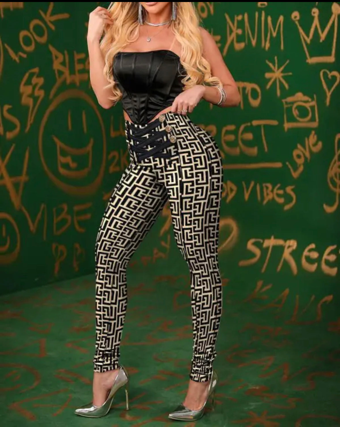 FZ Women's Geometric Print High Waist Butt Lift Skinny Pants