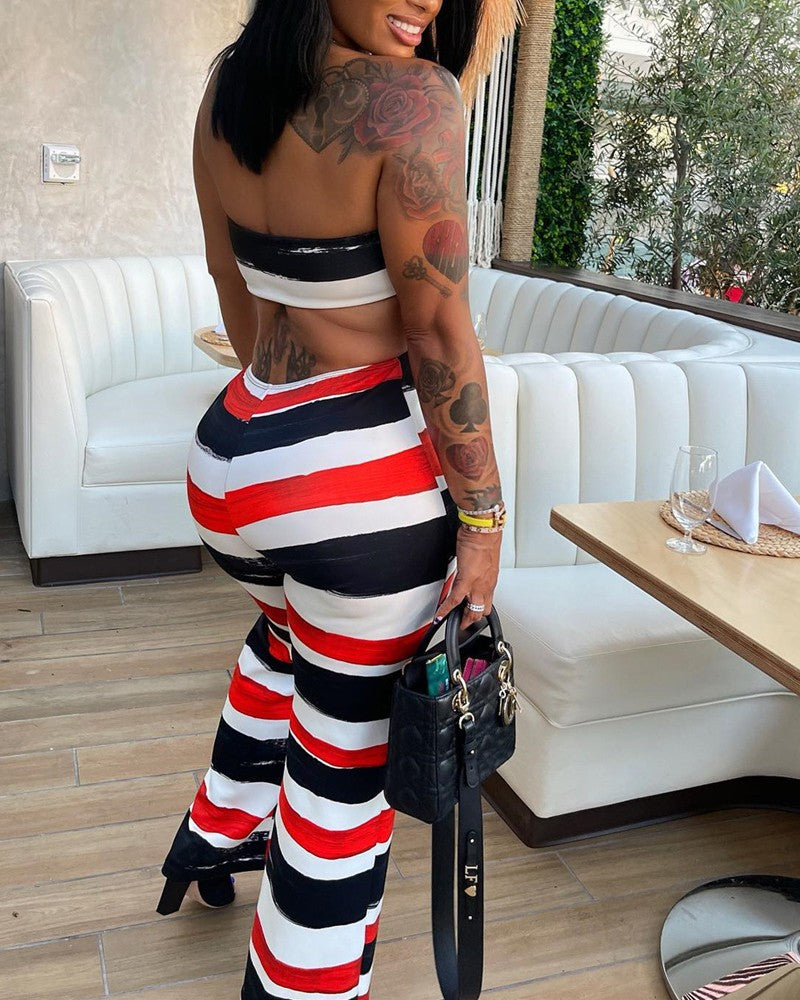 FZ Women's Striped Backless Wide Leg Jumpsuit