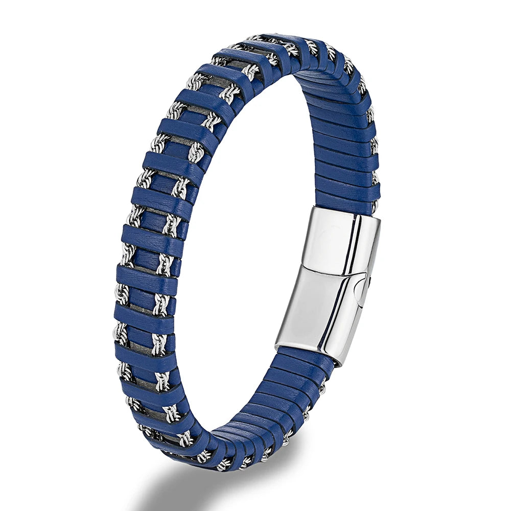FZ Stainless Steel Link Chain Combination Blue Leather Bracelet