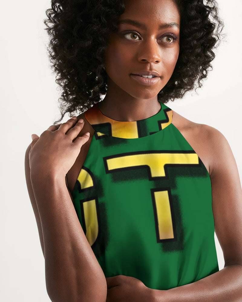 About The ArtNATURE ZONE GETTING BACK TO THAT NATURAL ZONE Product DetailsElegant yet simple, your personalized design will look phenomenal in our Women's Halter Dress. Handmade from polyester chiffon material and fastened in the back with two chic pearl buttons.