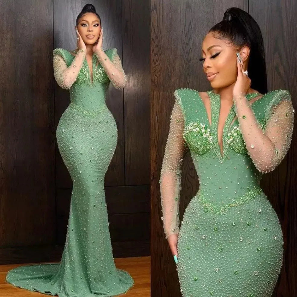 FZ Women's Beading Mermaid Luxury Crystal Beaded Evening Dress