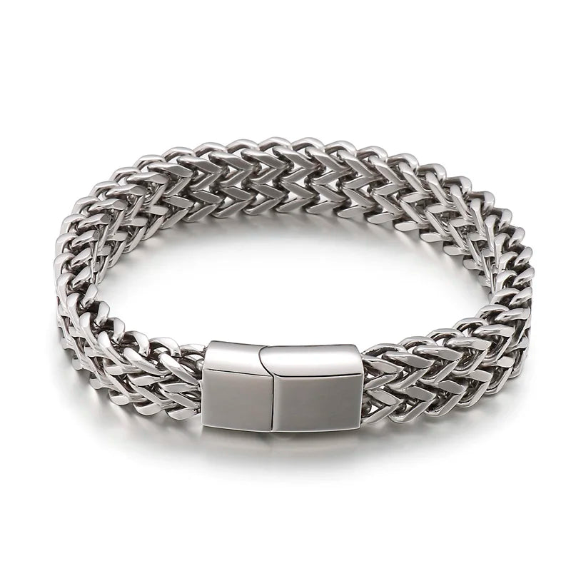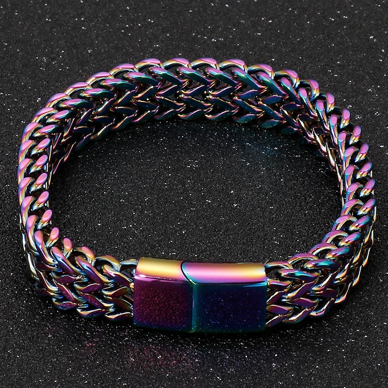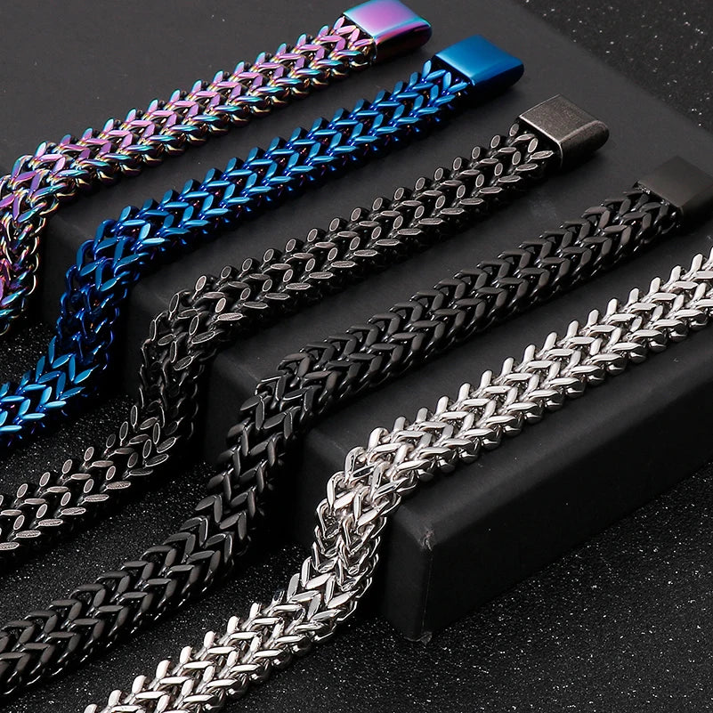 This FZ Solid Stainless Steel Color Chain Bracelet is stylish and fashionable, making it the perfect accessory for any outfit. Enjoy its luxurious look and durability, as it is made of high-quality stainless steel. Elevate your style with this chic bracelet.
