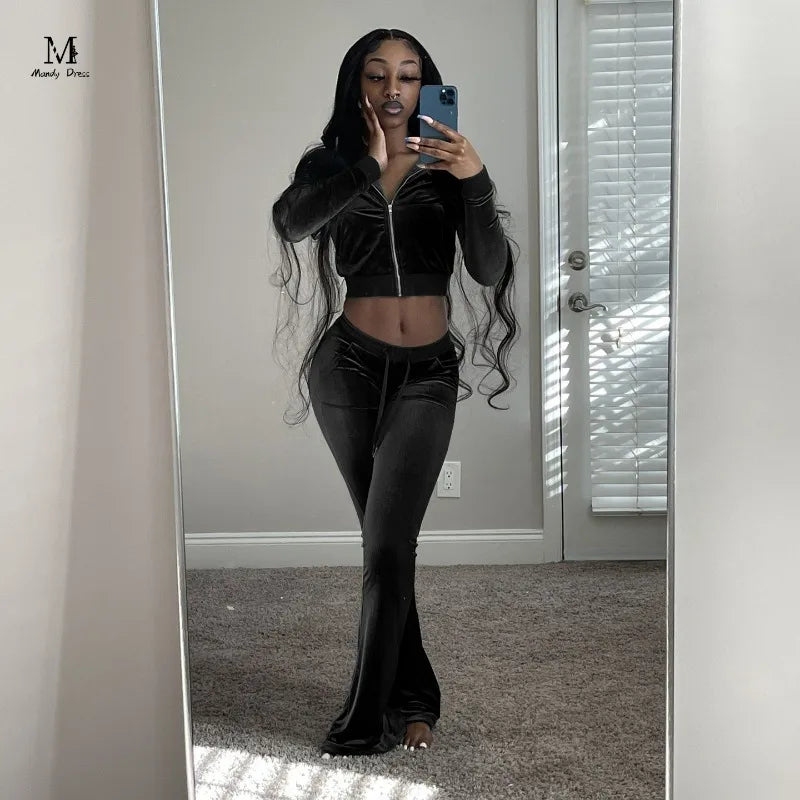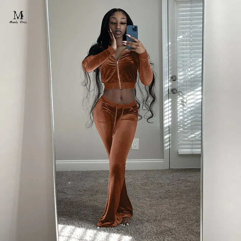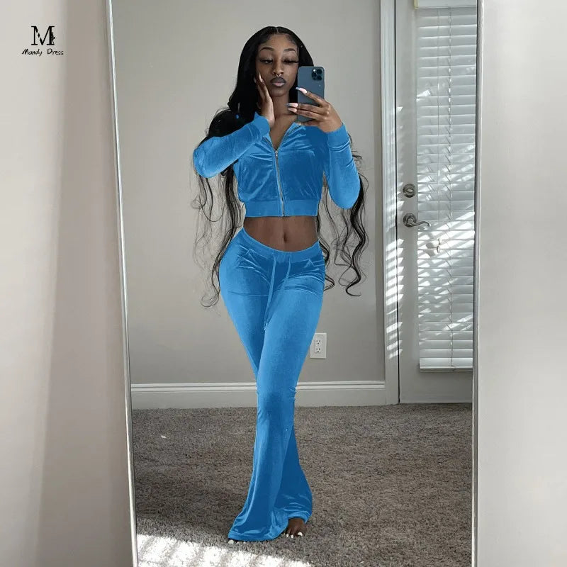 FZ Women's Velvet 2 Two Piece Flare Pants Suit Sale price$75.00