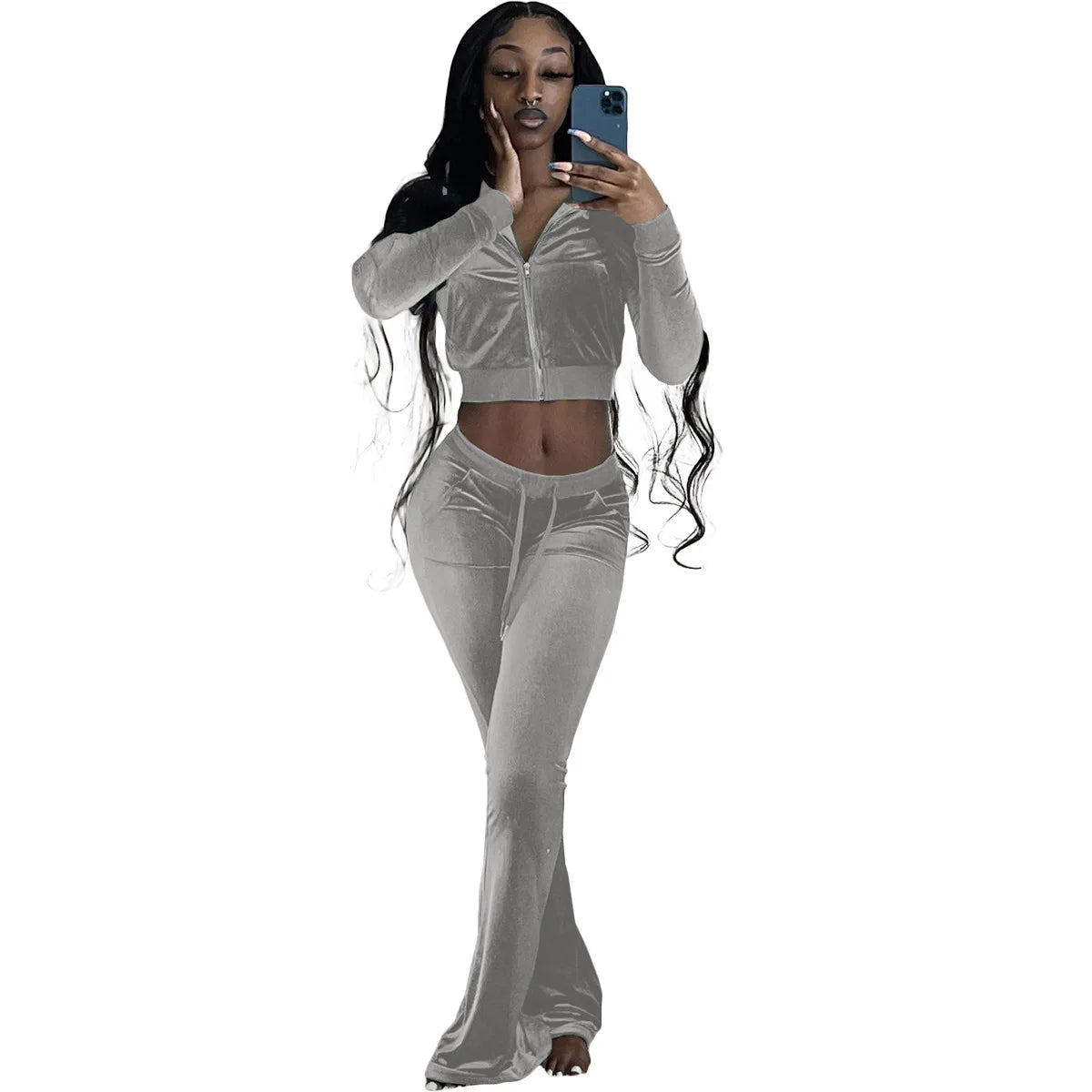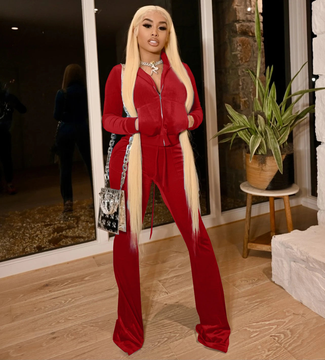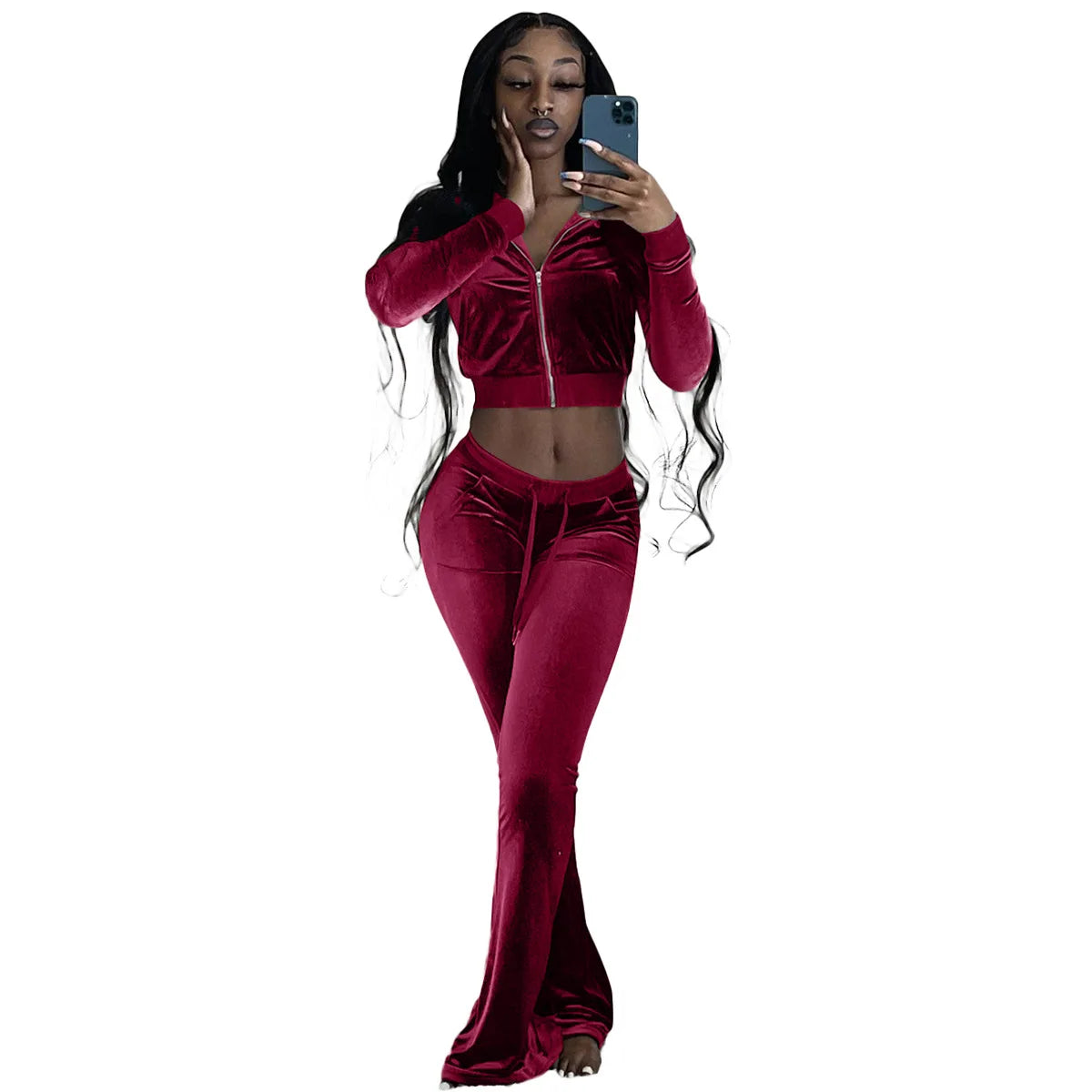 FZ Women's Velvet 2 Two Piece Flare Pants Suit