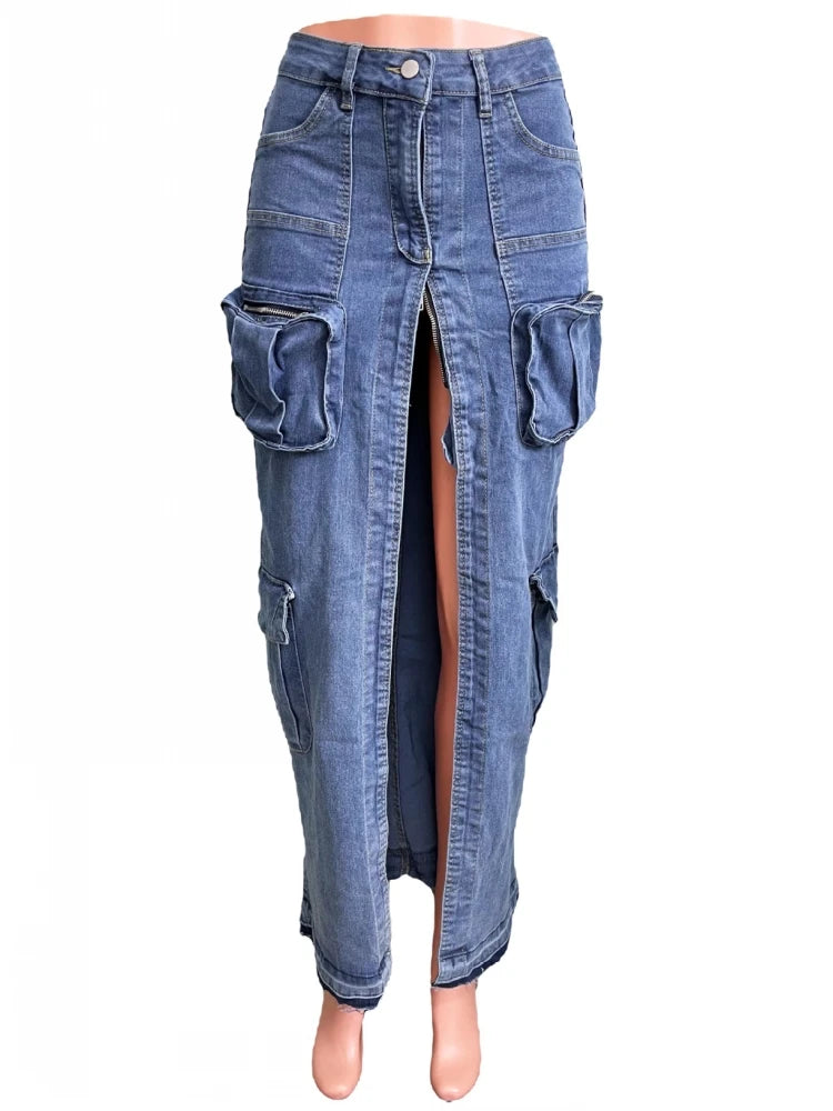 FZ Women's Vintage Loose Chic Elegant High Waist Denim Skirt