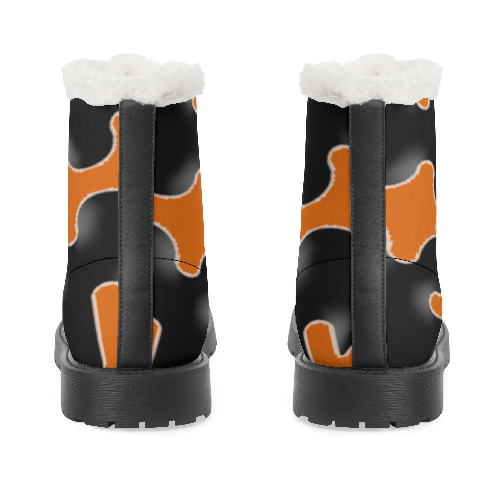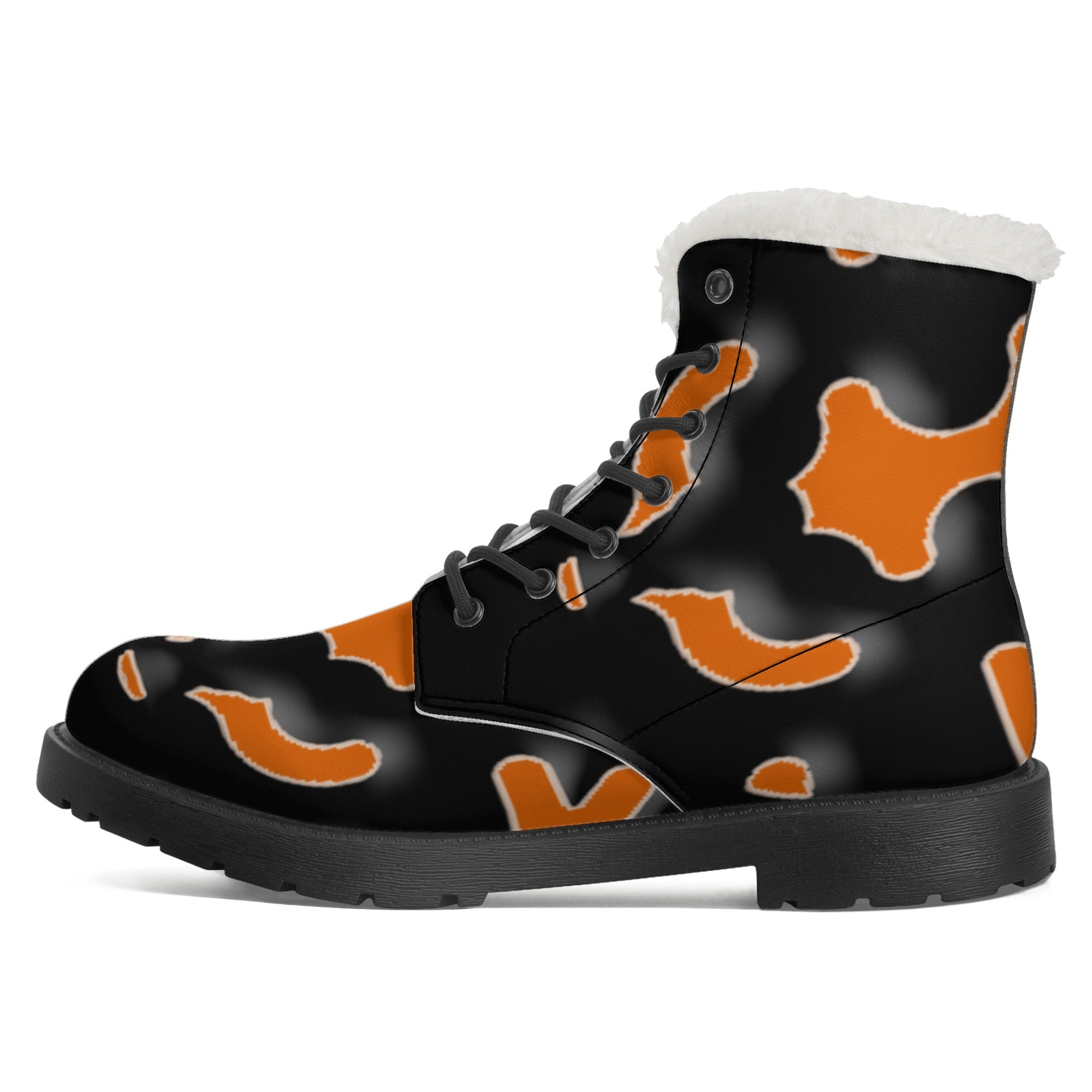 * Eco-friendly rubber cleated material soles on faux fur leather boots